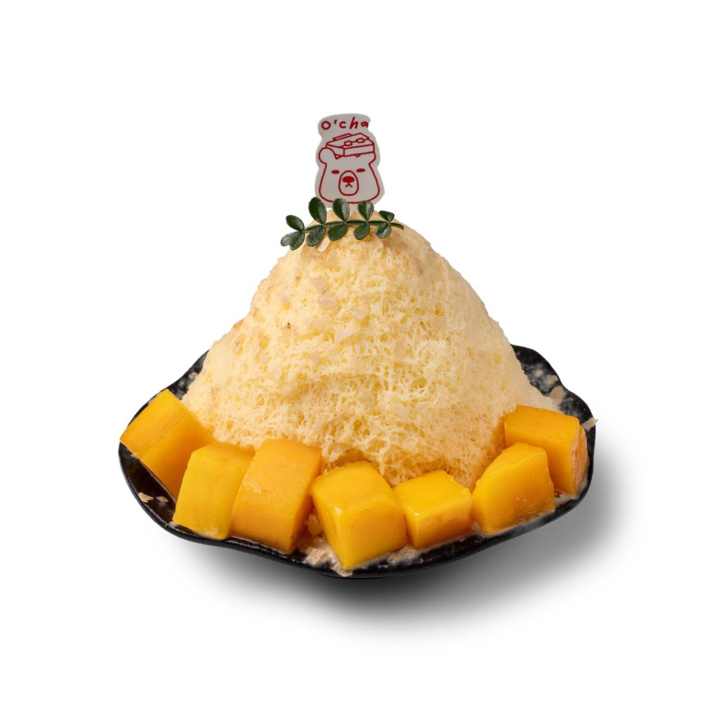 A tropical paradise in a bowl — golden mango snow ice piled high and surrounded by generous chunks of fresh, sun-ripened mango. Bright, juicy and bursting with summer sweetness.