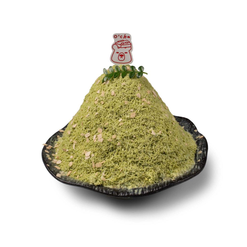 Vibrant Japanese matcha snow ice, bold and grassy with a gentle bitterness, scattered with delicate almond flakes for a satisfying crunch. A matcha lover's dream, beautifully crafted.